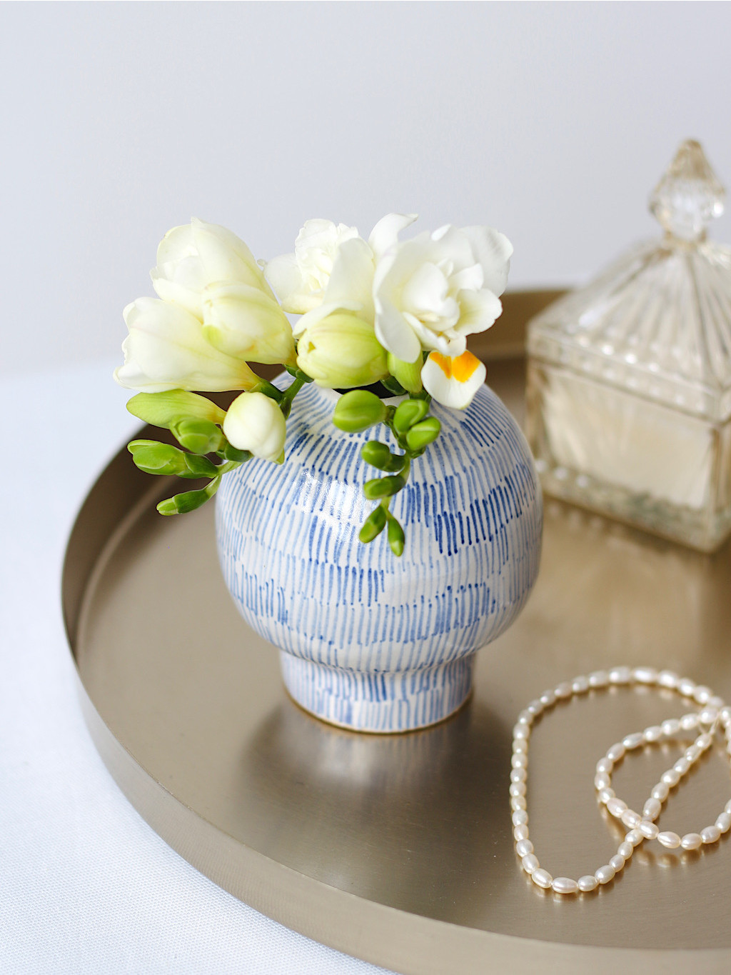 Rodinný recept, verše nebo milostný dopis… Ať už si představíte napsané inkoustem cokoli, vázy z kolekce INK v sobě nesou právě tento příběh. Každá váza je originál. Jemné modré linky připomínají rukou psaný text – někdy lehký a nenápadný, jindy výraznější, podle nálady a gesta.