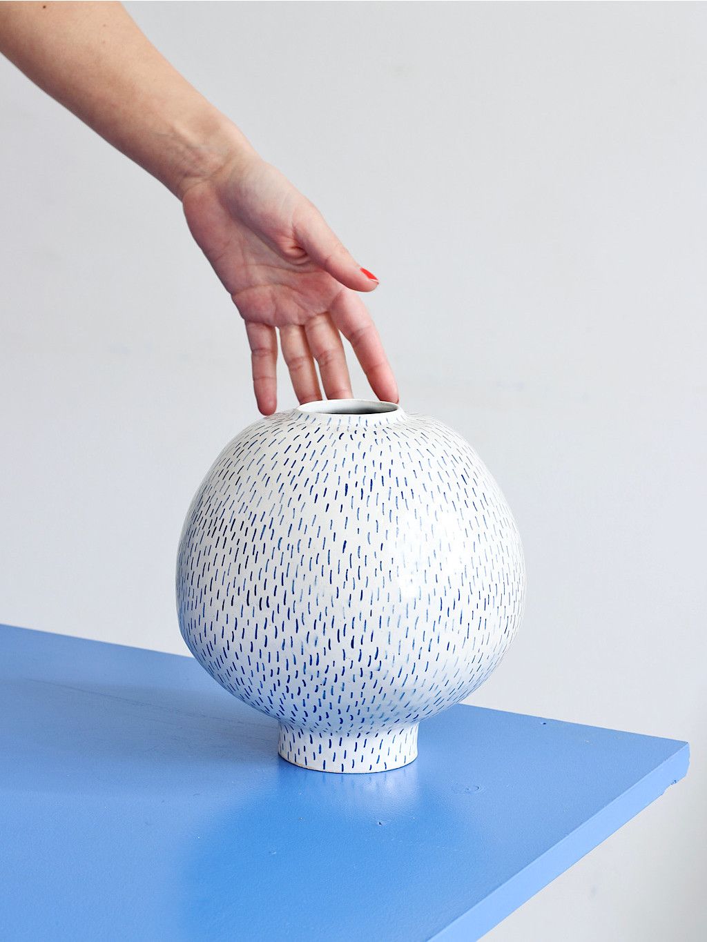 Rodinný recept, verše nebo milostný dopis… Ať už si představíte napsané inkoustem cokoli, vázy z kolekce INK v sobě nesou právě tento příběh. Každá váza je originál. Jemné modré linky připomínají rukou psaný text – někdy lehký a nenápadný, jindy výraznější, podle nálady a gesta.