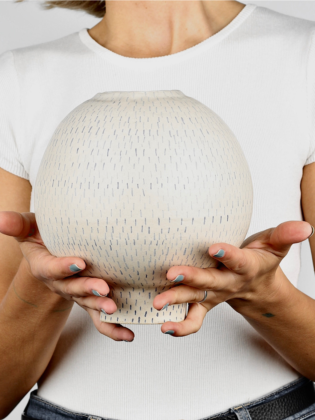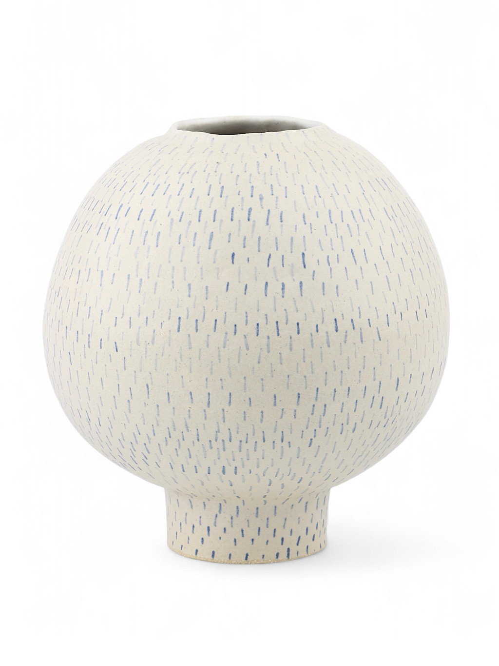 Rodinný recept, verše nebo milostný dopis… Ať už si představíte napsané inkoustem cokoli, vázy z kolekce INK v sobě nesou právě tento příběh. Každá váza je originál. Jemné modré linky připomínají rukou psaný text – někdy lehký a nenápadný, jindy výraznější, podle nálady a gesta.