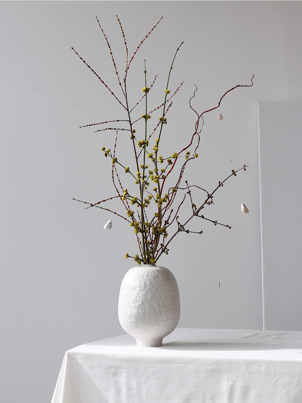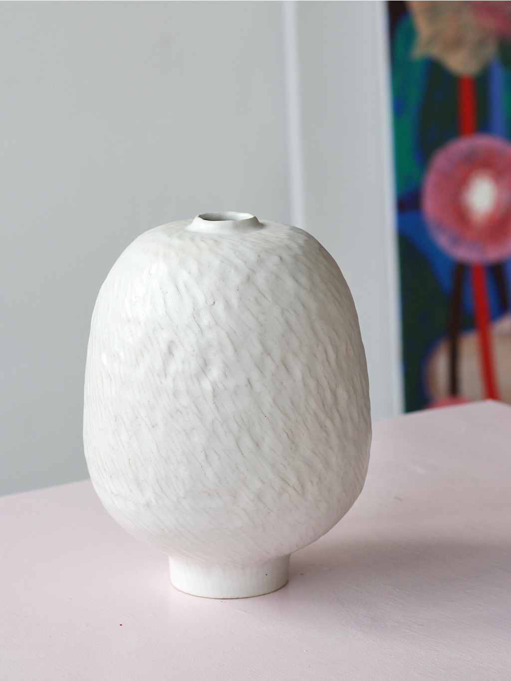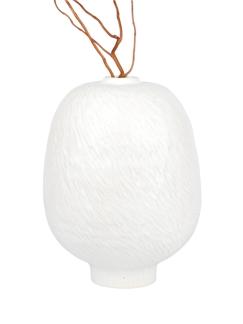 Díky čisté bílé barvě a sošnému tvaru působí jako malý objekt, který prostor neruší, ale přirozeně ho doplňuje. Nejkrásněji vynikne samostatně nebo s jednoduchou květinou či větvičkou.