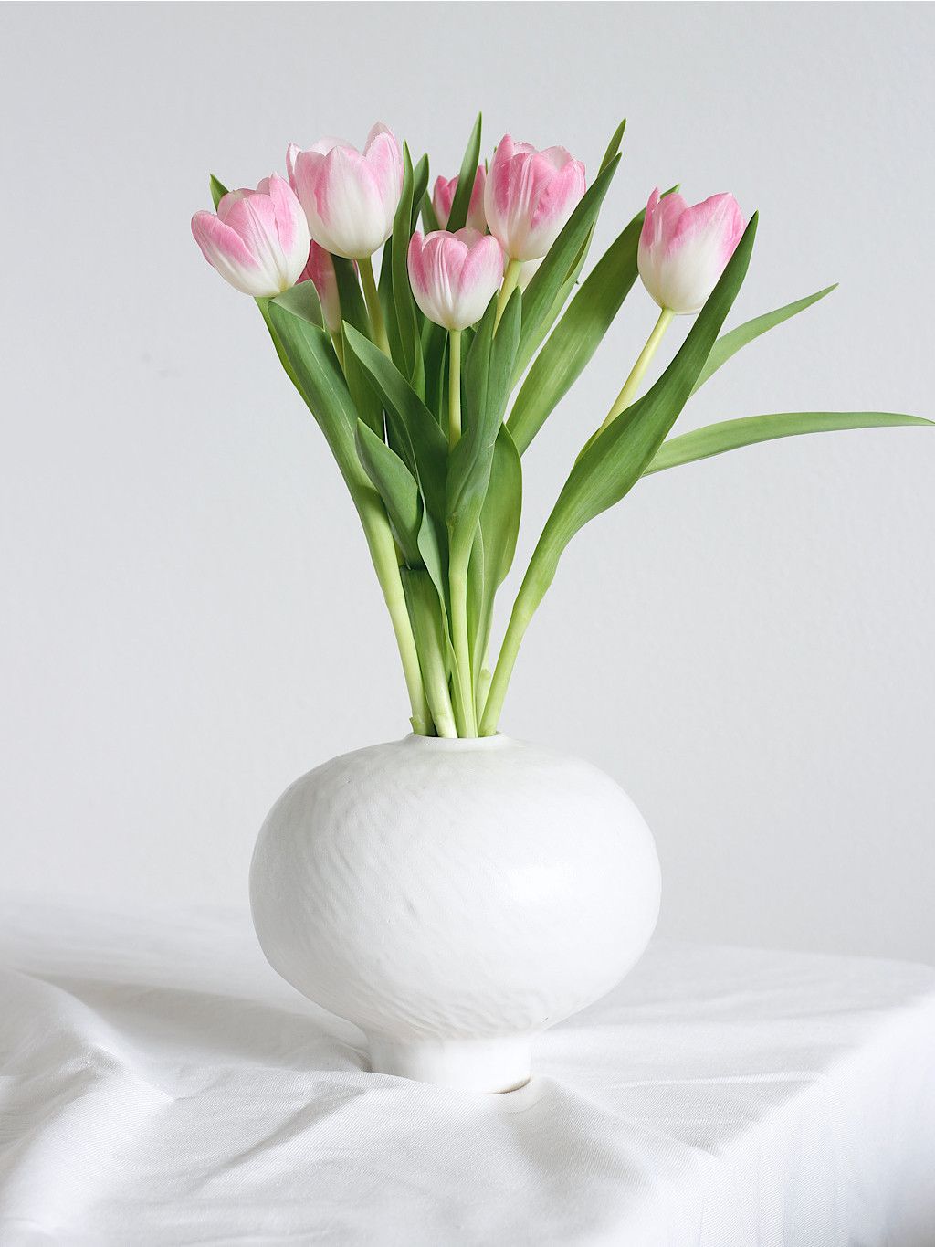 Díky čisté bílé barvě a sošnému tvaru působí jako malý objekt, který prostor neruší, ale přirozeně ho doplňuje. Nejkrásněji vynikne samostatně nebo s jednoduchou květinou či větvičkou.