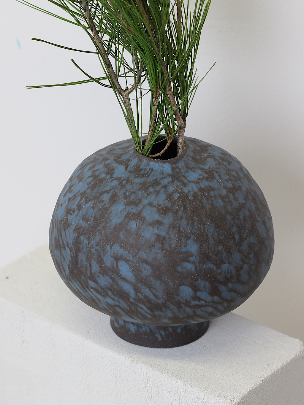 Modelovaná z tmavé hlíny technikou handbuilt a dvakrát vypálená při vysokých teplotách, váza získává výjimečnou pevnost a estetickou hloubku. Uvnitř ji pokrývá glazura, která nejen chrání, ale zároveň dodává jemný kontrast k přírodnímu povrchu zvenčí. Bez obav ji naplníte vodou i čerstvými květinami.